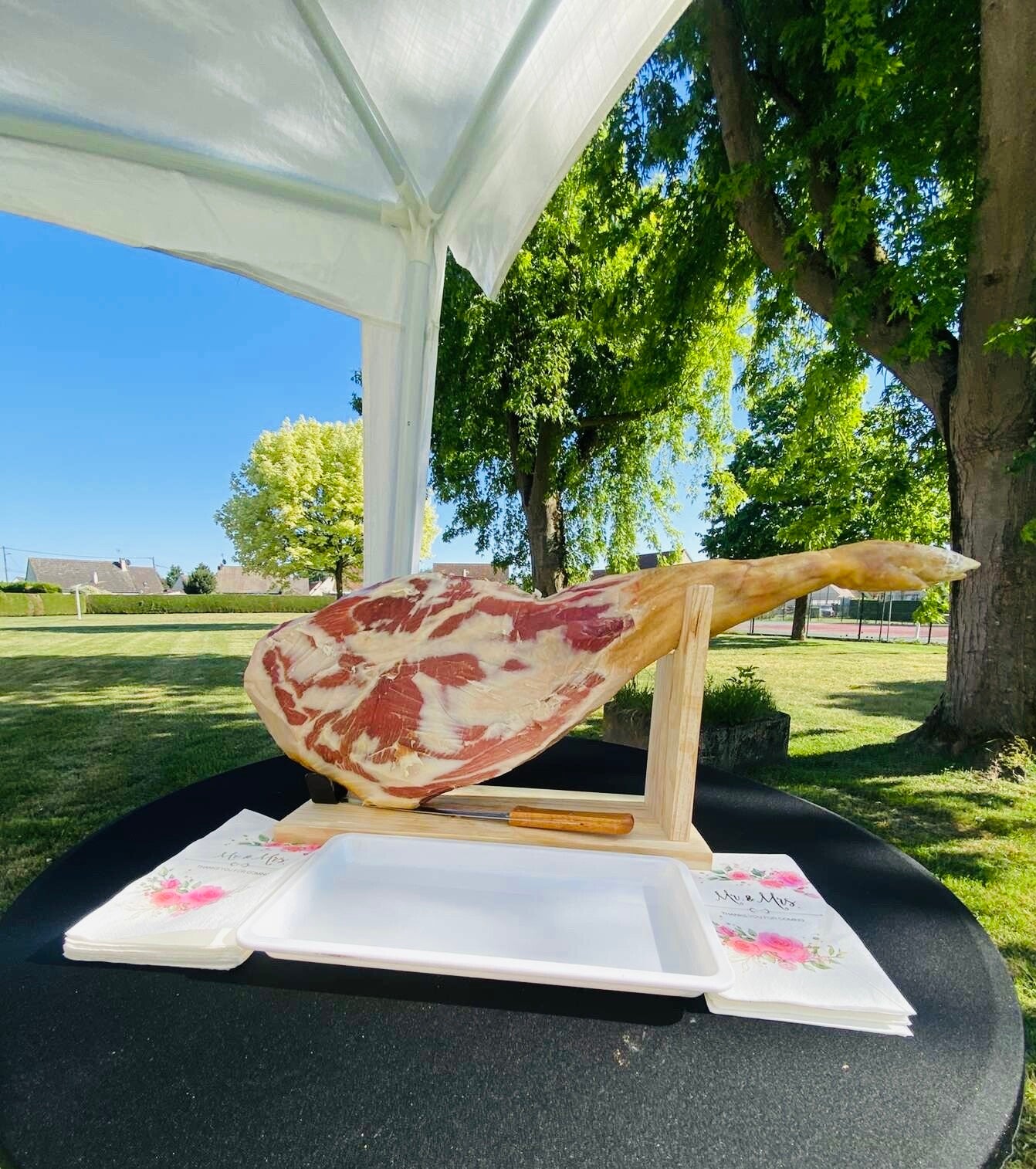 Jambon de Pays coupé au couteau à la minute pour accentuer le moment convivial avec les invités !